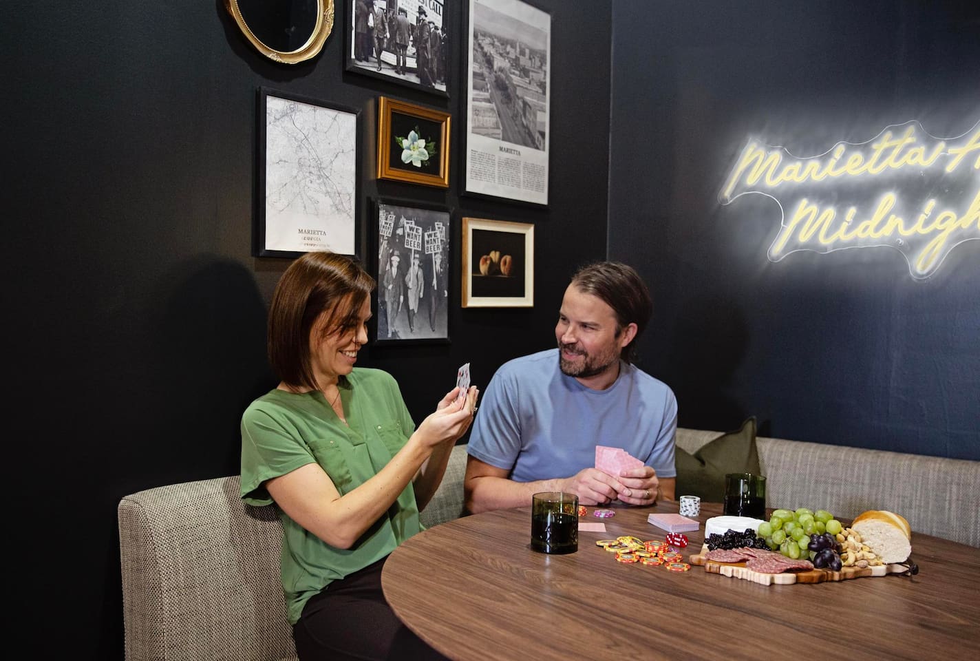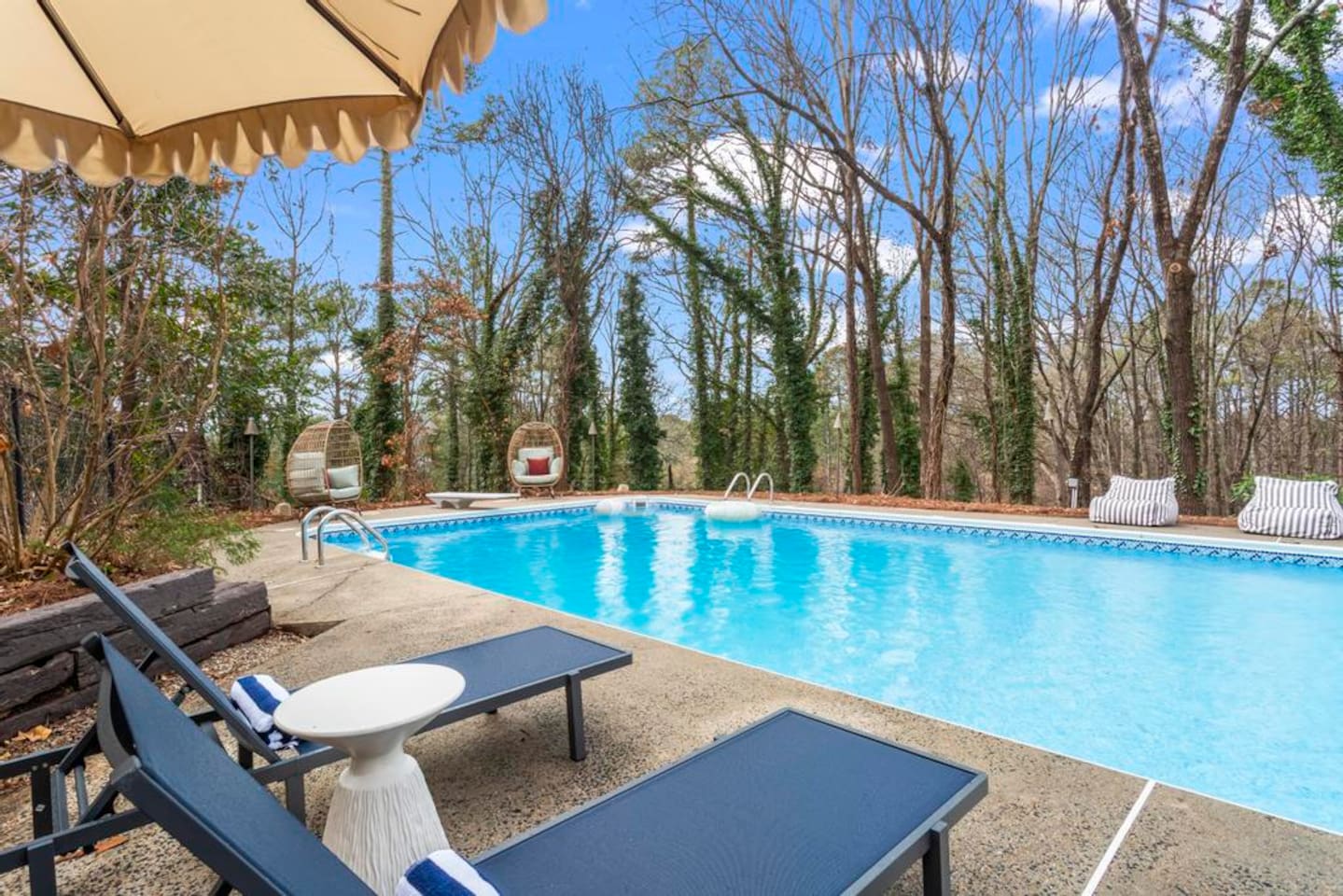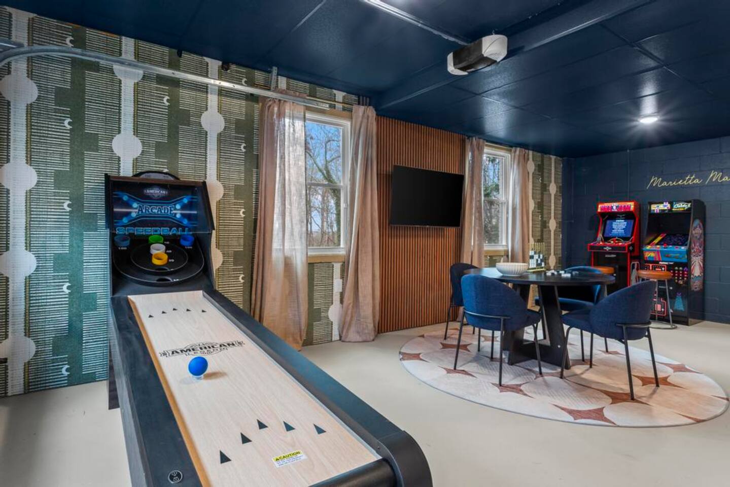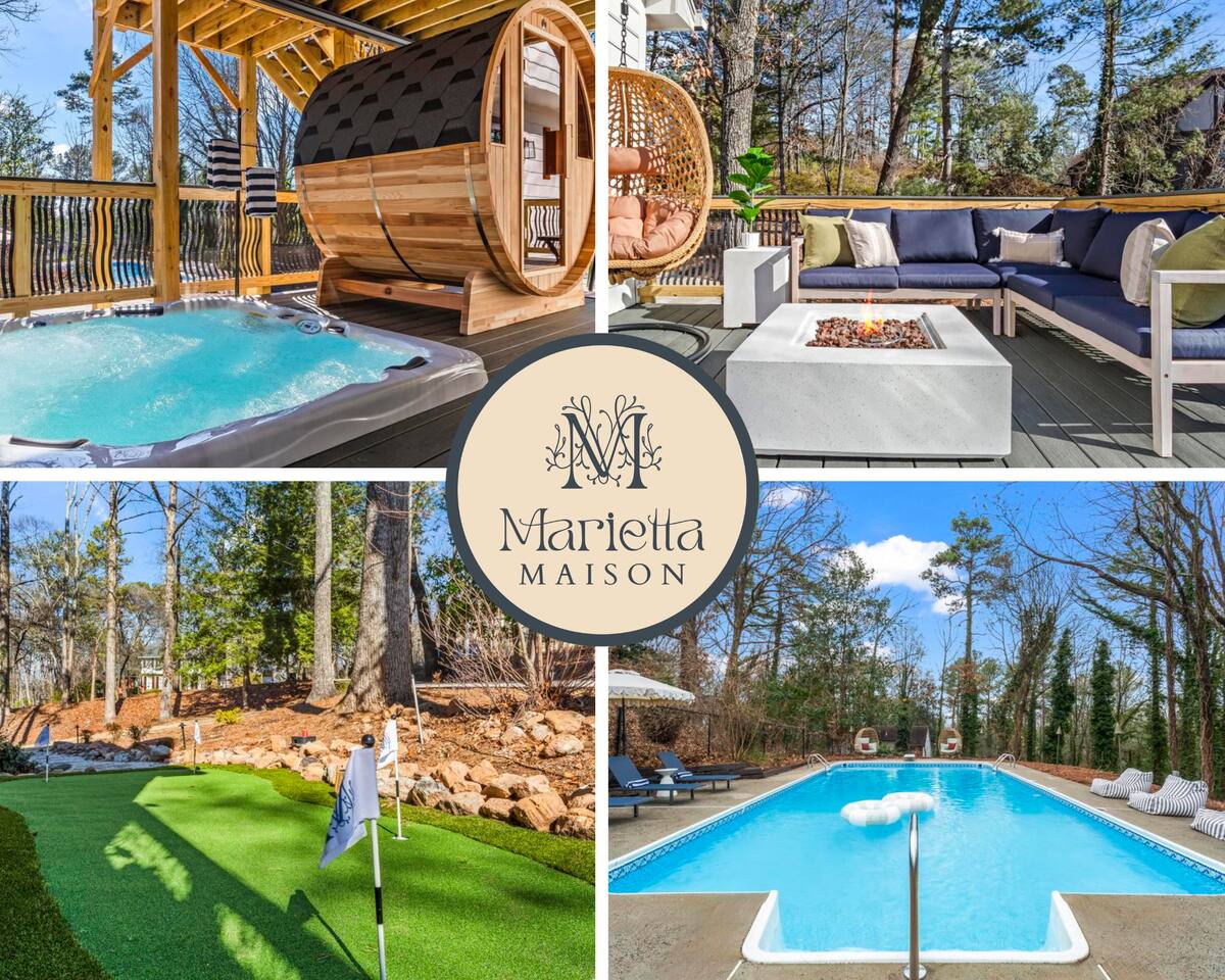 Welcome to Marietta Maison—your perfect retreat for families and friends. This 5-bedroom estate sleeps up to 18 guests and spans three spacious floors designed for unforgettable group fun with resort style amenities: 🏊Pool 🫧Hot Tub 🪵Barrel Sauna 🔥Fire Pit 🍔BBQ Grill 🎮Game Room 🍿Movie Theatre 🎲Speakeasy ⛳Putting Green 🏀Basketball 🧸Family Friendly ⚾20 minutes to the Braves Truist Park