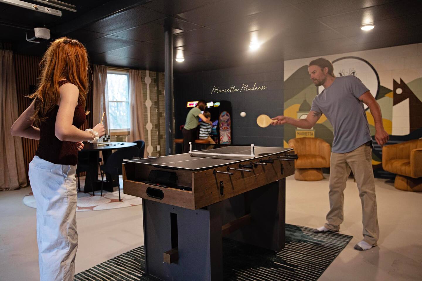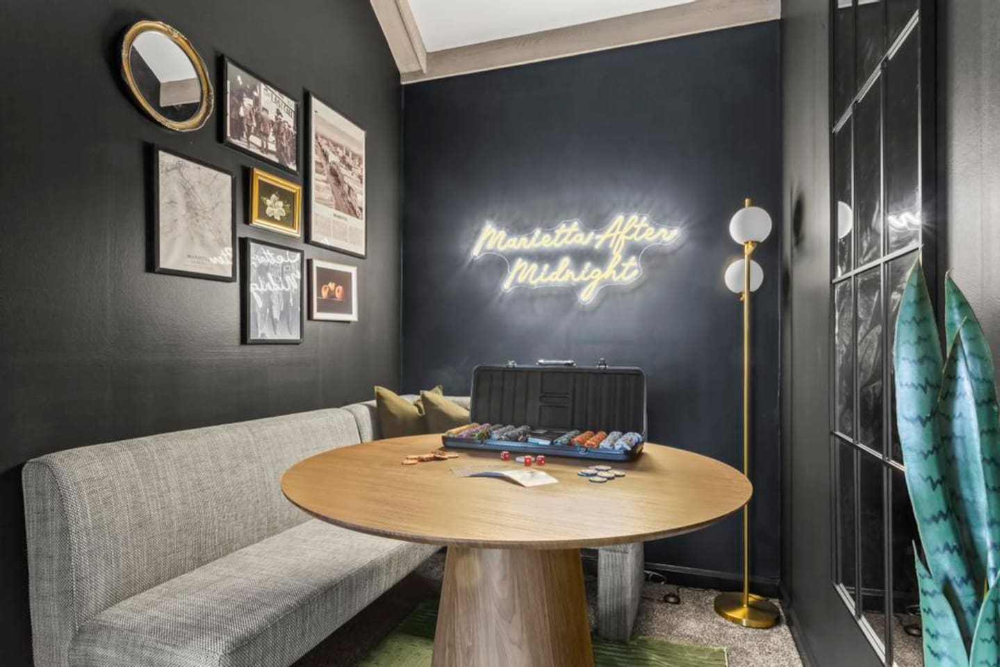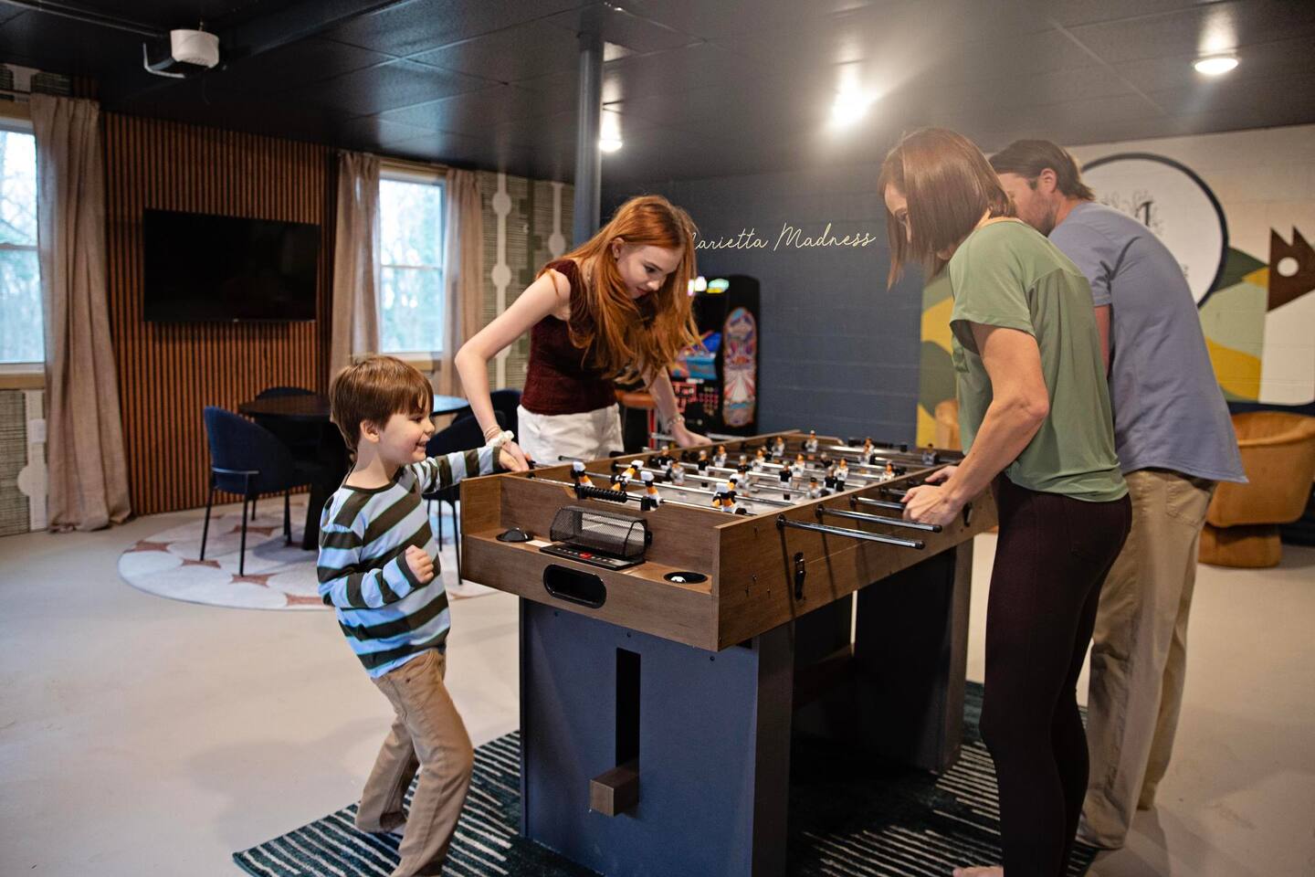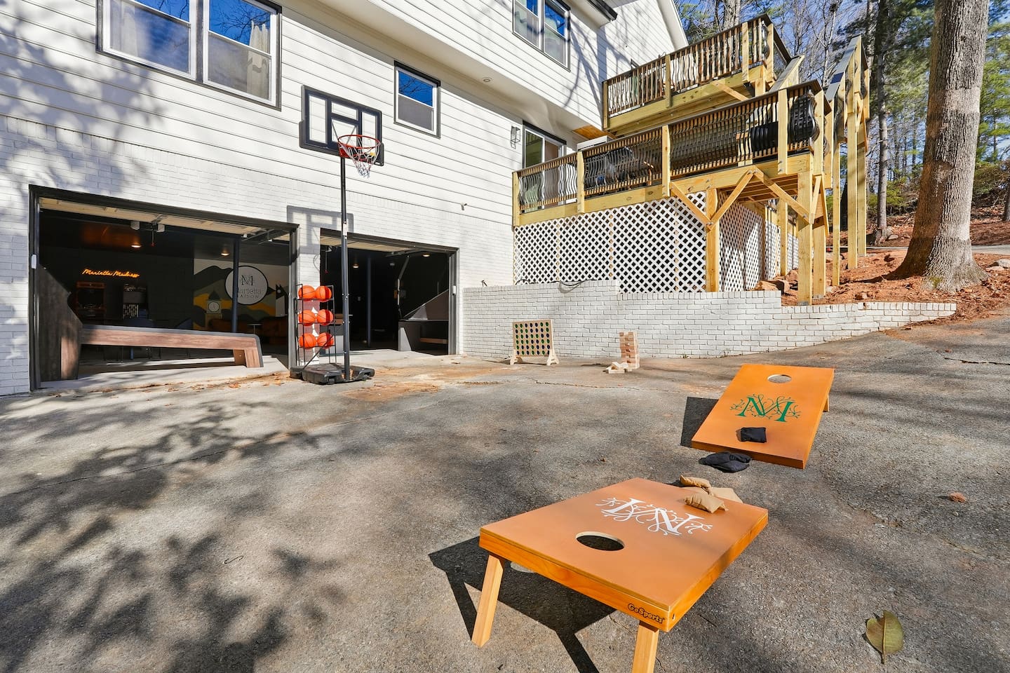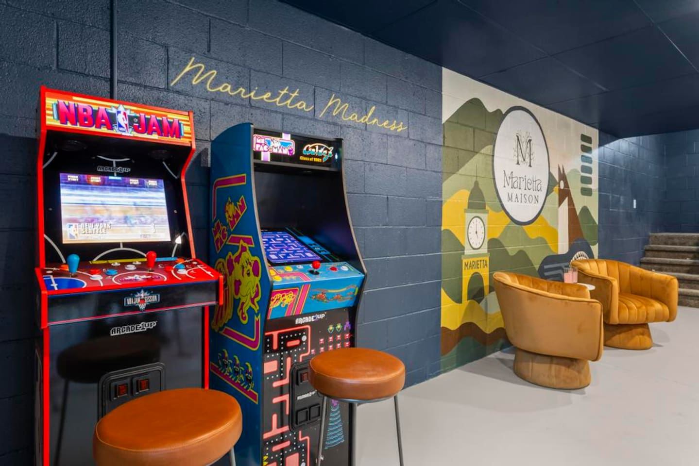 Welcome to Marietta Maison, a modern-flair retreat designed for families and groups who crave connection, comfort, and unforgettable moments together. Only 3 miles from Marietta Square and 10 miles from the Atlanta Braves’ Truist Park, you’ll enjoy quick access to I-75 and many of Atlanta’s top attractions while still feeling tucked away in your own private sanctuary. 🏡Property Highlights ◆Sleeps up to 18 guests ◆Outdoor living with pool, putting green, basketball & outdoor games ◆Patio with hot tub, sauna, fire pit and swinging chairs ◆Entertainment for all ages: Arcade game room, speakeasy and movie theatre ◆Fully equipped kitchen 🌳Outdoor Living ◆Inground Pool for those hot summer days ◆Hot Tub & Sauna for Complete Relaxation ◆Gather around the fire pit under the stars ◆Large dining table for group meals + a grill for outdoor cooking and BBQs ◆Putting Green for the golfers ◆Swing chairs on the upper deck for lazy morning relaxation ◆Basketball hoop ◆Giant Jenga, Connect Four and Corn hole for friendly competition 🛌Sleep and Comfort ◆Bedroom 1: King Bed, sleeper sofa (full), Desk area, en-suite bathroom ◆Bedroom 2: King Bed ◆Bedroom 3: Queen Bed ◆Bedroom 4: Two Full over Full Bunk Beds ◆Bedroom 5: King Bed (on main floor) Stay in comfort and enjoy our brand new furnishings, inside and out. 📺 All bedrooms and game room feature 50" smart TVs (except kids bunk room). Main floor living room and movie theatre features 65" smart TV. 📺 👶Family-Friendly Features Traveling with little ones? We have what you need: Pack n Play, highchair, baby gate, toys, books, play tent and a kid’s kitchen 📍 Location ◆ 3 Miles from Marietta Square ◆ 5 Miles from Six Flags White Water ◆ 10 Miles from Truist Park ◆ 7 Miles from Kennesaw Mountain National Battlefield Park & nearby trails / parks ◆ Close proximity via 1-75 to World of Coke, GA Aquarium, Mercedes Benz Stadium, State Farm Arena, Piedmont Park, ◆ Why Guest Love it ◆ ✔ Resort-style amenities without the crowds ✔ Perfect balance of luxury + family fun ✔ Private yet close to everything in Marietta and within 20-30 minutes of the Atlanta Area ✔ Spaces designed for kids, adults, and groups to enjoy together At Marietta Maison, every detail has been designed to bring people together—whether you're splashing in the pool, sharing stories around the fire pit, unwinding in the sauna, or enjoying movie night in your private theatre. This is more than a place to stay; it's a place to reconnect, celebrate, and create lasting memories. Book your stay today and experience comfort, connection, and resort-style amenities—all in one unforgettable retreat. Guest access Guests will have access to the entire home with the exception of the locked owners closet and locked shed by the pool. Other things to note Check-in is at 4pm, check-out is at 10am 🚭 Smoking indoors = $1,000 fine